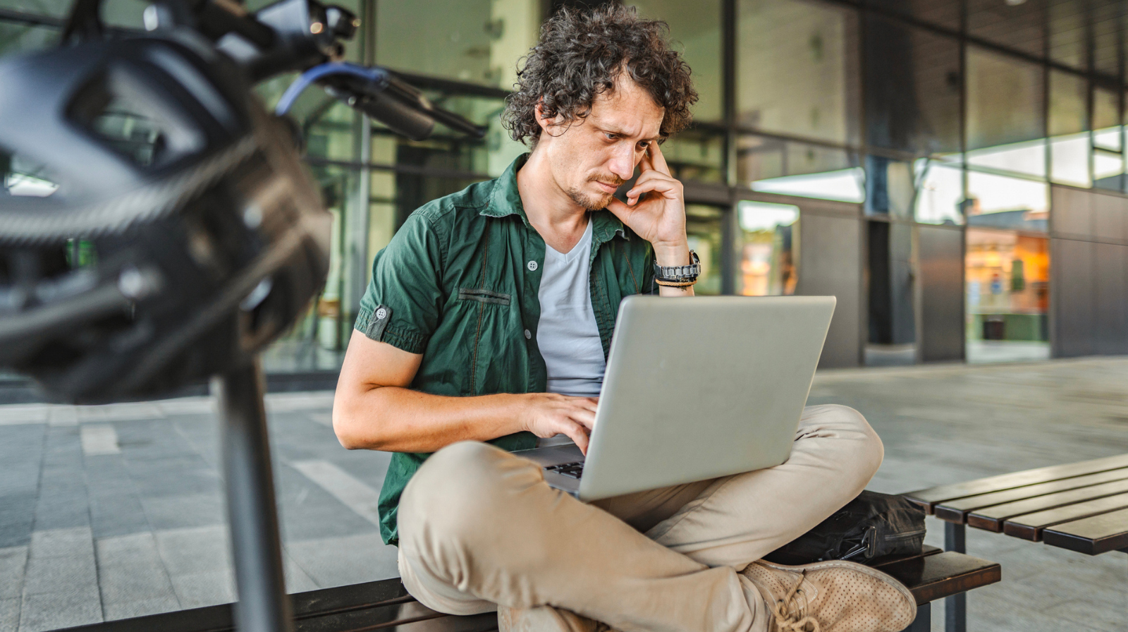 Un homme anxieux regardant son ordinateur portable