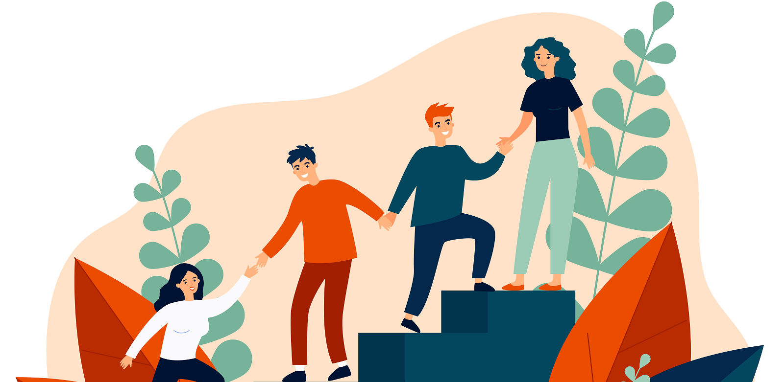 Happy young employees giving support and help